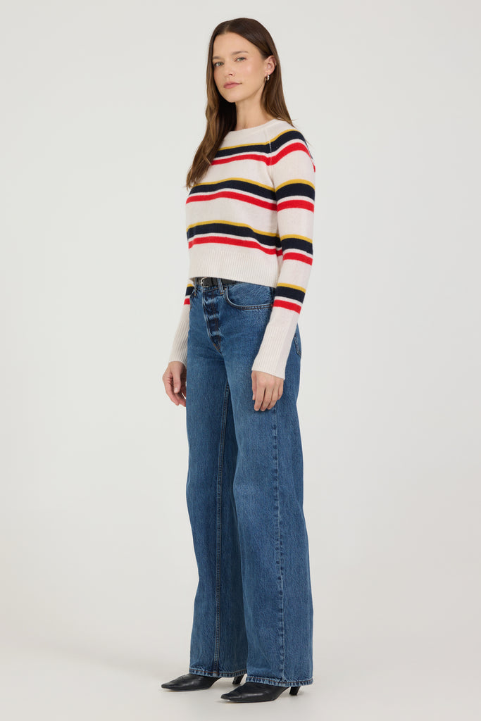 Our favorite cashmere pullover knit in mid-gauge loose tension for ultimate softness, with a shorter body length, and relaxed fix. Featuring an easy crewneck, and raglan armholes.