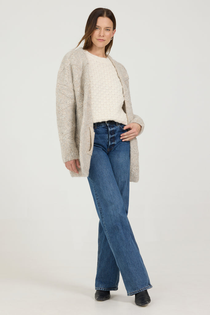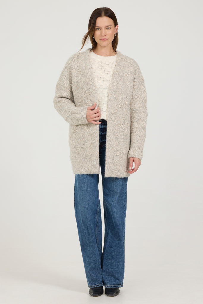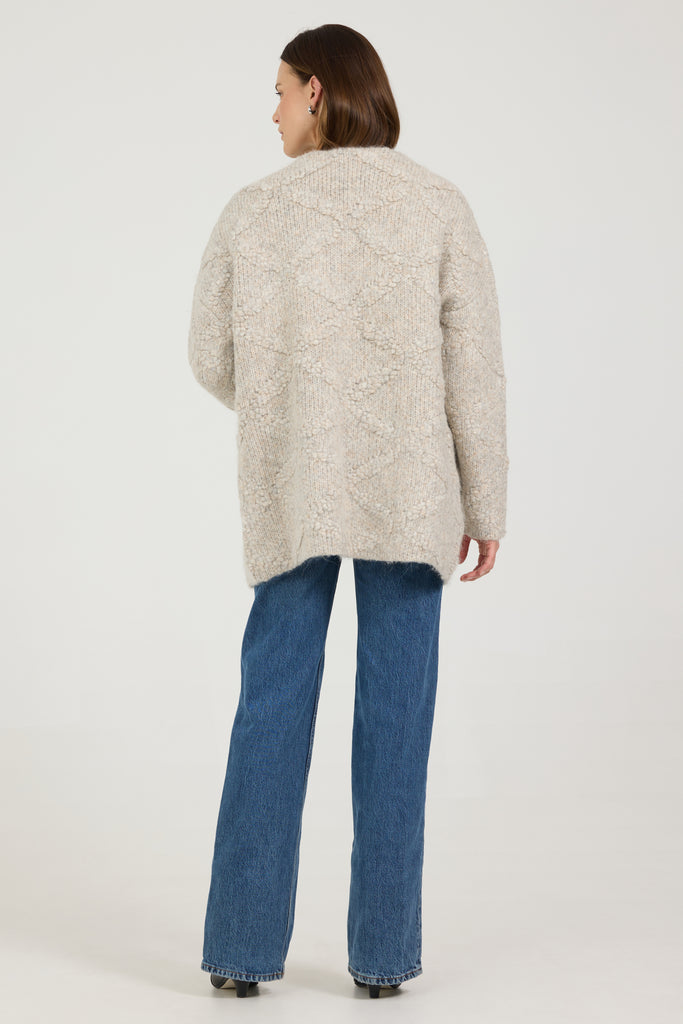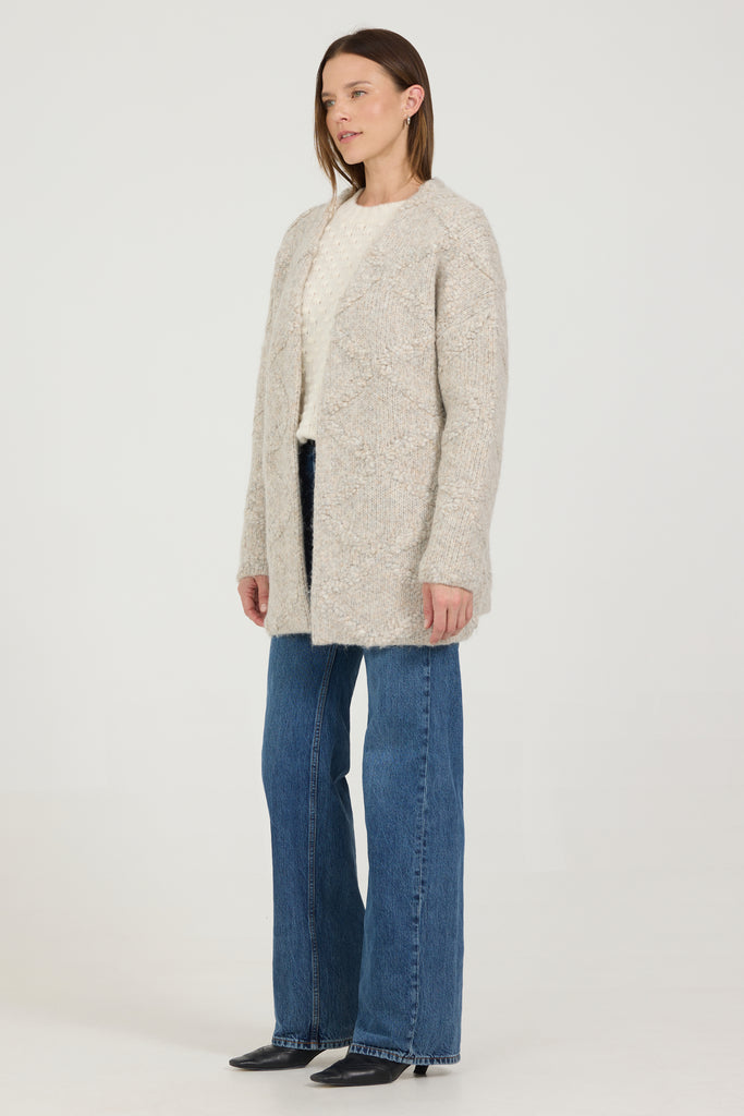 Cozy meets statement in this beautifully patterned cardigan, knit from a warm and lightweight blend of 53% wool, 17% alpaca, and 30% polyamide fiber. The intricate patterning brings visual richness and artisanal texture, while the wool and alpaca provide natural softness and insulation. A hint of polyamide ensures lasting shape and durability. Designed with a relaxed fit and finished with ribbed edges, this cardigan layers effortlessly over any outfit, perfect for adding character and comfort to cool-weather looks.