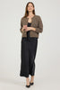 Chic and compact, this shrunken three quater length sleeve cardigan is crafted from a soft, airy blend of 53% wool, 17% alpaca, and 30% polyamide fiber. The result is a cozy yet lightweight knit with a gentle fuzziness and structured feel. Designed with a cropped silhouette and abbreviated sleeves, it adds a refined, vintage-inspired touch to high-waisted trousers or layered dresses. Finished with delicate ribbed trims and tonal buttons, this cardigan is an effortlessly stylish layering piece for transitional days and cool evenings.