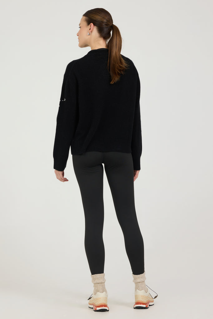 Channel the energy of the slopes with this playful pullover from our Après Ski Capsule. Crafted from a luxurious blend of 70% mercerized wool and 30% cashmere, it delivers a smooth, lightweight hand feel and plush warmth. The skiers intarsia graphic adds movement and charm, capturing the thrill of downhill runs in a bold, modern knit. With its classic crewneck shape and easy fit, this sweater brings winter whimsy and elevated comfort to any cold-weather wardrobe.