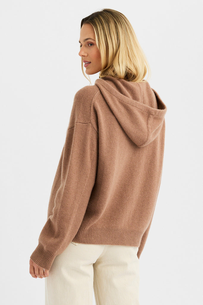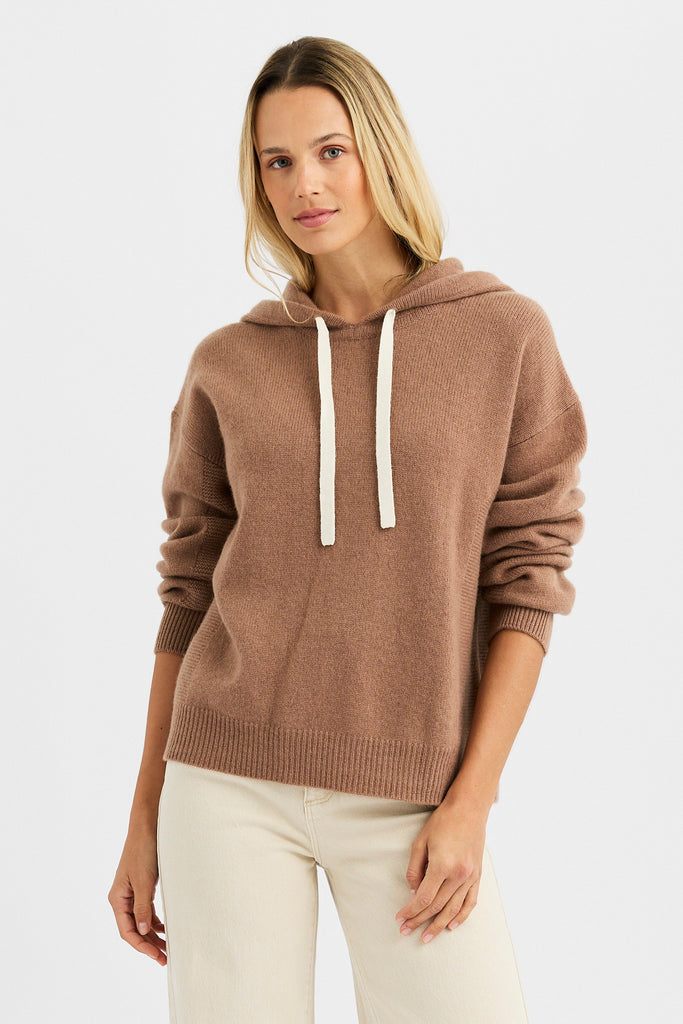 Elevate every day comfort with the Ashleigh Cashmere Hoodie. Crafted from ultra-soft pure cashmere, it is accented with specially stitched side panels that subtly define the silhouette while adding textural depth. The adjustable hood is finished with contrast drawstring pulls, an understated pop that sets it apart.