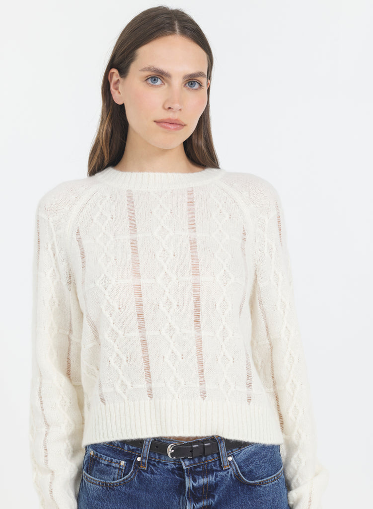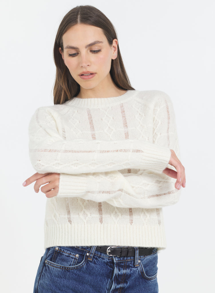 Delicate and airy with a touch of texture, the Charlotte Crewneck is crafted from a luxurious blend of Merino wool and Cashmere. The open-knit design features subtle vertical striping and soft detailing, a layer that feels luxe, light, and cozy.
