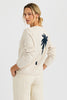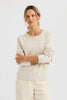 A coastal vibe meets elevated knitwear in the Sandy Pullover, featuring a palm tree intarsia on the back. Crafted from a breathable, lightweight blend with natural texture and a subtle sheen, this relaxed pullover feels as effortless as it looks. The clean front keeps things minimal, while the back offers an unexpected hit of laid-back charm. Perfect for cool evenings, seaside getaways, or just bringing a touch of vacation to the everyday.