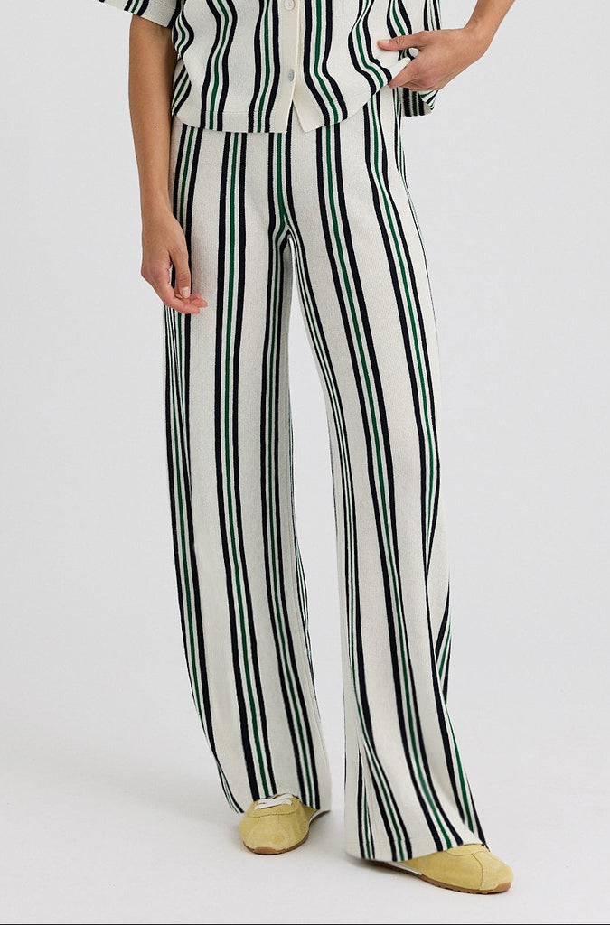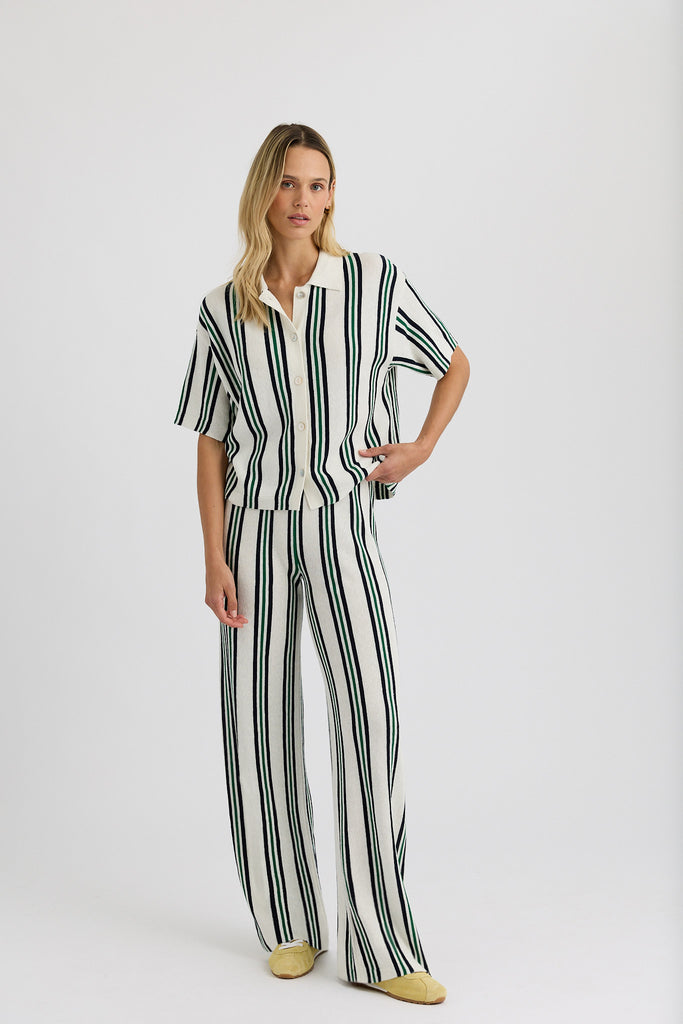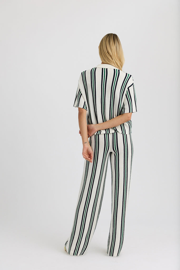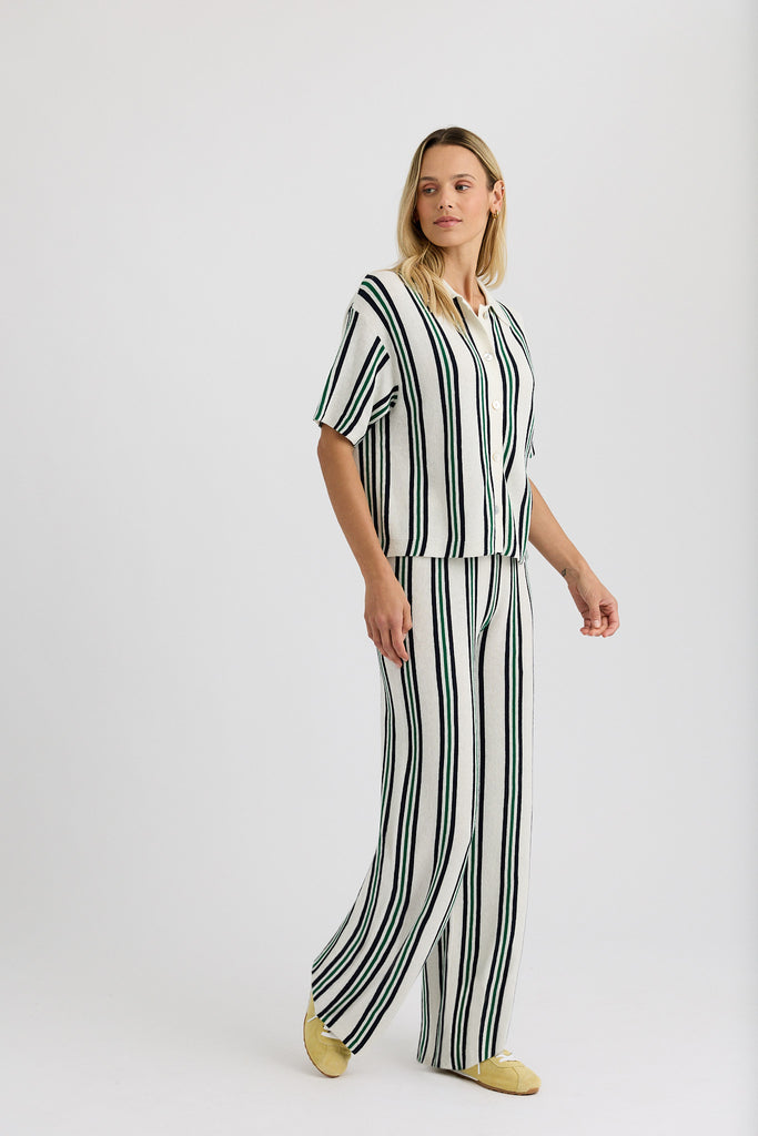The Rafa Pant, designed to pair with the matching polo, these pants are crafted from a breathable cotton-linen blend with a soft, airy knit texture. The relaxed silhouette and pull-on waistband offer all-day ease, while subtle detailing keeps the look polished. Perfect for lounging, traveling, or effortless warm-weather styling, they bring a refined take to leisure dressing with vintage-inspired charm.