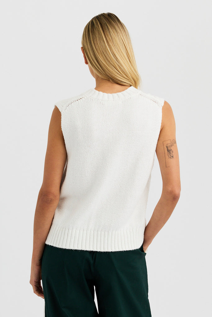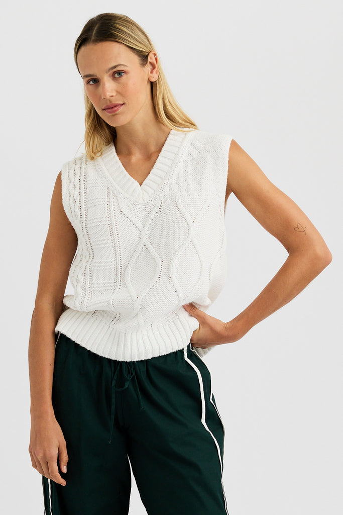 The Skye Vest, a 100% cotton V-neck vest features a distinctive mix of cable knit patterns for rich texture and visual interest. Breathable and soft, it’s perfect for transitional dressing, styled over a crisp shirt or worn solo. Finished with ribbed edges for a polished touch, this versatile piece brings a modern twist to a heritage silhouette.